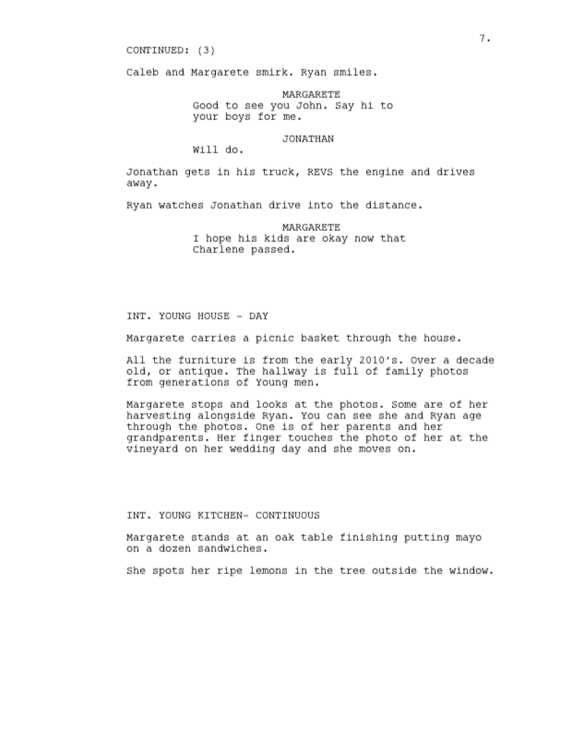 Exerpt from a feature screenplay. When an arsonist sets fire to their winery, a Californian family uncovers a conspiracy of greed in a life-and-death battle to save their legacy that tests their bonds to the breaking point.